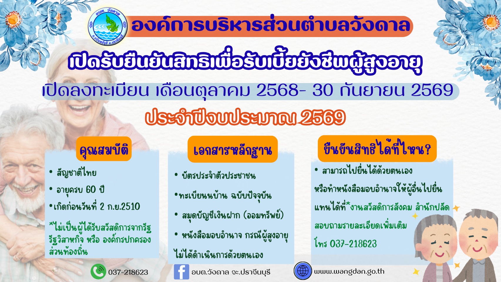 ประชาสัมพันธ์การเปิดรับยืนยันสิทธิรับเบี้ยยังชีพผู้สูงอายุ2569 |
