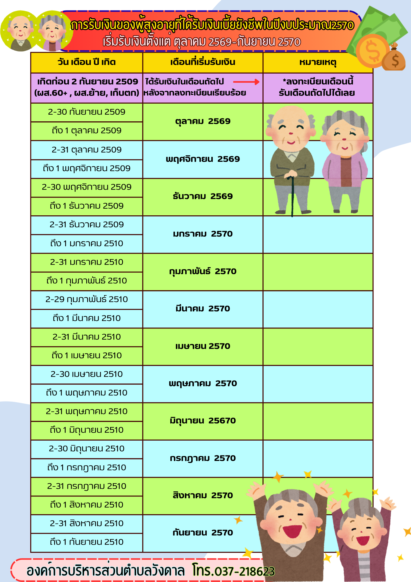 คำนวนเดือนรับเงินผู้สูงอายุ